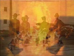 framed images: stills from Ronconi’s Pasticciaccio – with photograph of Gadda in uniform (on the left) superimposed.