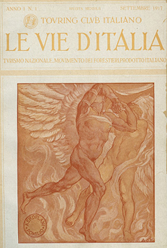 Copertina illustrata da Adolfo de Carolis, i cui frontespizi aprono la rivista fino al dicembre 1919, introducendo gli editoriali di Bertarelli.