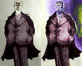 E. Nella Cognizione la stessa diceria delle genti, e la parlata e il gesto de’ commedianti, de’ furbi o furbastri, degli ebefrenici e dementi furiosi, si colora a volte dei colori del grottesco; mentre la debilità de’ malati, degli sprovveduti o idioti de’ poveri, degli umili non dà luogo a tanto, se non forse a un attenuato e quasi pietoso grottesco di carattere per lo più idiomatico, e di tipo sub-andino maccheronizzante: comunque scarnamente figurativo e flebilmente onomatopèico della povertà di spirito, e del riguardo che le è dovuto da esseri di maggiore facoltà. Altrove riesce a un «grottesco» psicopatològico....