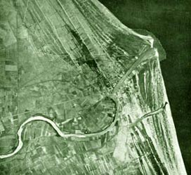 Framed image: Southern Italy – the rivers (delta of the Volturno); photograph by the Geographical Institute of the University of Rome, in R. Almagià, L’Italia (Turin: UTET, 1959), I, 490.
