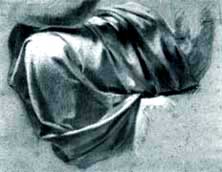 framed image: after Leonardo, Drapery Study, c. 1478, Musée du Louvre, Paris; Pierre-Paul Prudhon, étude de draperie, c. 1802, Musée Baron Martin, Gray