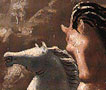 framed image: detail from Francisco Goya, Don Manuel Osorio Manrique de Zuñiga, Metropolitan Museum of Art, New York; detail from Giorgio de Chirico: Chevaux effrayés par le bruit des vagues, 1926, Private Collection